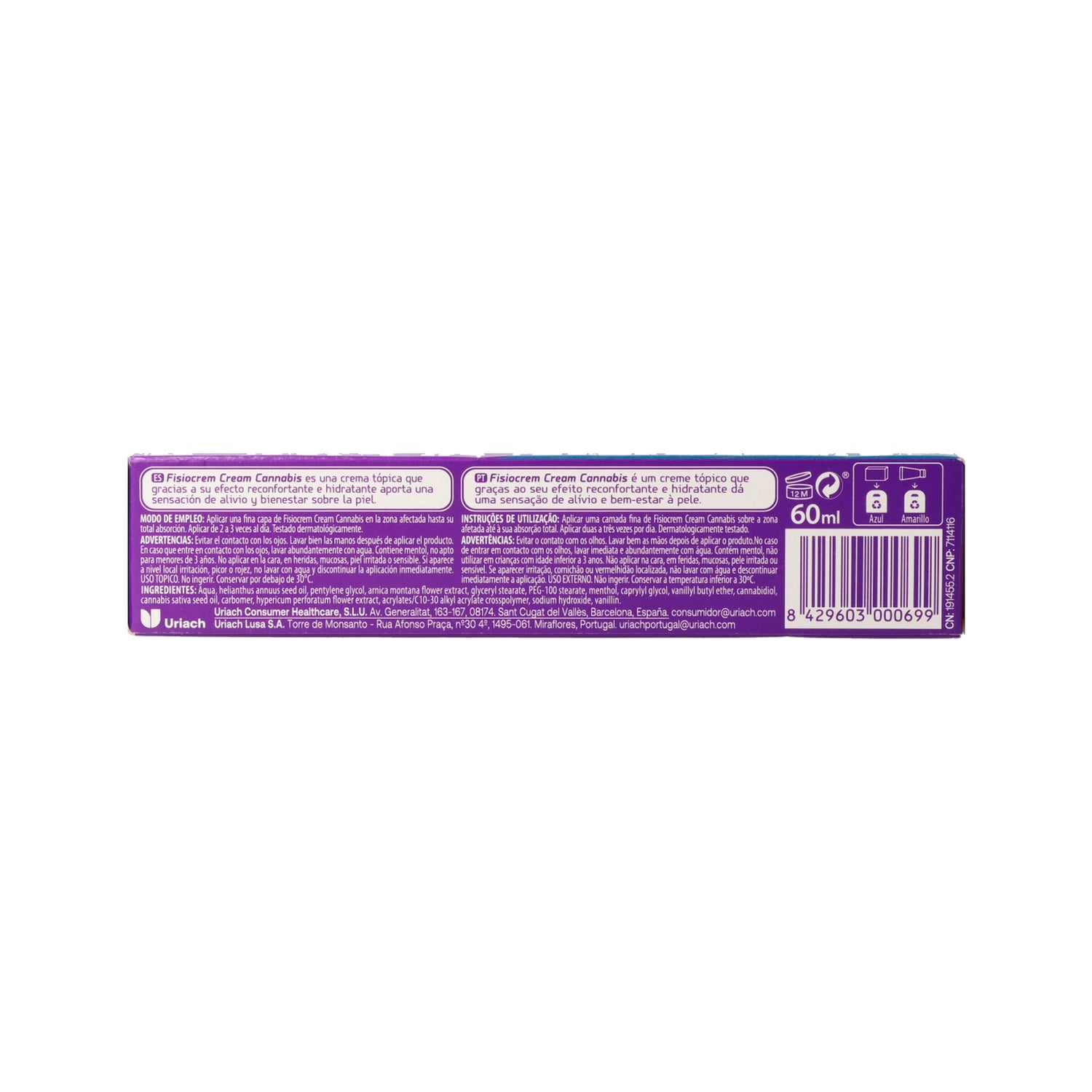 Fisiocrem Cannabis Cream 60ml is a skin cream formulated with Cannabidiol (CBD), Hypericum and Arnica. These combined ingredients relieve discomfort and provide a soothing and comforting effect. It acts on the endocannabinoid system, a system responsible for regulating many physiological functions, including the perception, regulation and intensity of pain.