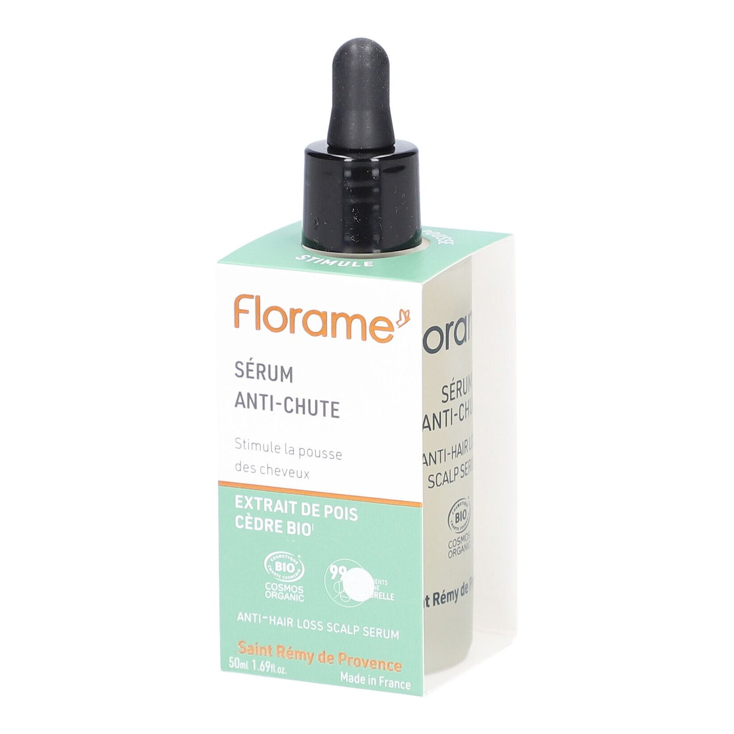 Florame Anti-Hair Loss Serum 50 ml is a treatment designed to help reduce hair loss and stimulate its growth. Its innovative formula combines pea extract and maca roots, two plant ingredients known for their strengthening properties.