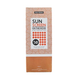 Frezyderm Sun Screen On The Move SPF50 Super Fine Mist 75ml is a facial sunscreen designed to provide advanced protection and comfort at any time. Its innovative ultra-fine mist technology allows for a quick and even application on the face, even over makeup, ensuring high SPF50 protection against sun damage.