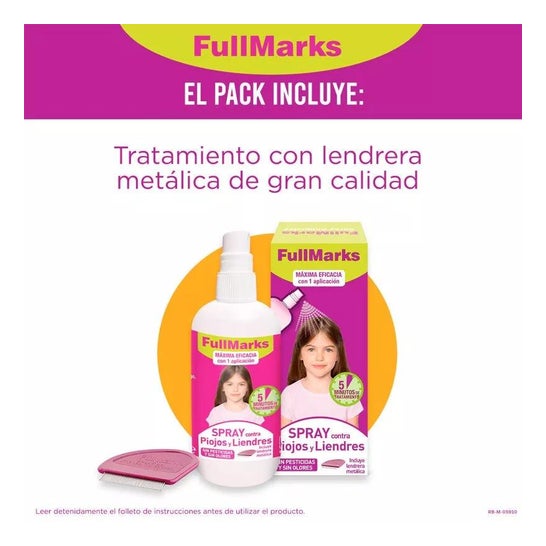 FullMarks Spray Against Lice and Nits 100ml is an anti-lice spray, free of pesticides and odors, which acts by attracting the insects and covering their shell, causing their death by dehydration.