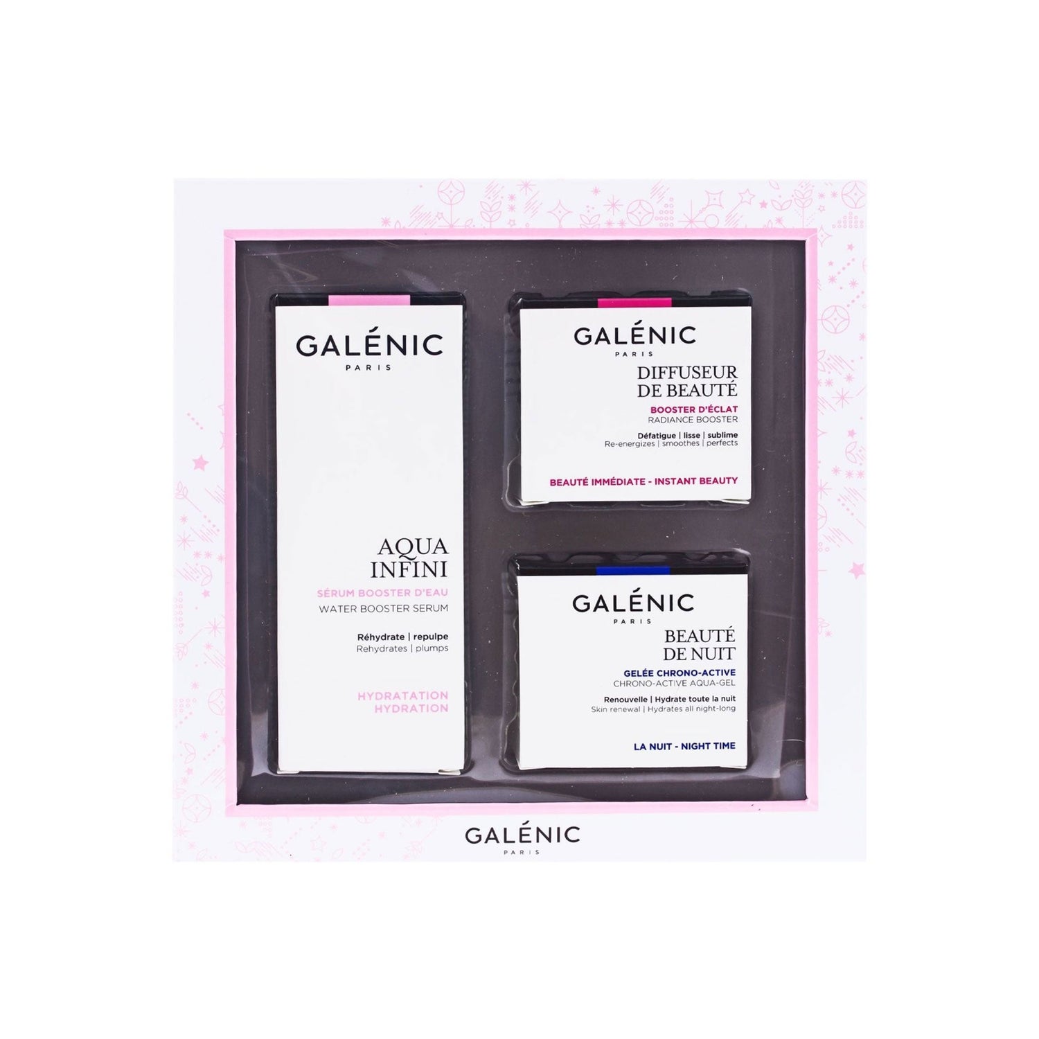 Galenic Diffuseur De Beaute + Beauté De Nuit + Aqua Infini Lotion is a comprehensive facial treatment for those who want to achieve radiant, hydrated, and revitalized skin. This exclusive set from GALENIC includes: