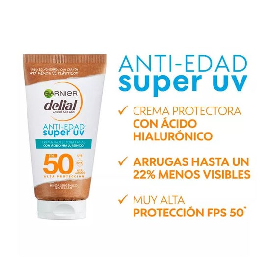 Garnier Delial Anti-Aging Super UV Protective Face Cream SPF50 50ml is a facial sunscreen that protects the skin against UVA, UBV and long UVA rays.