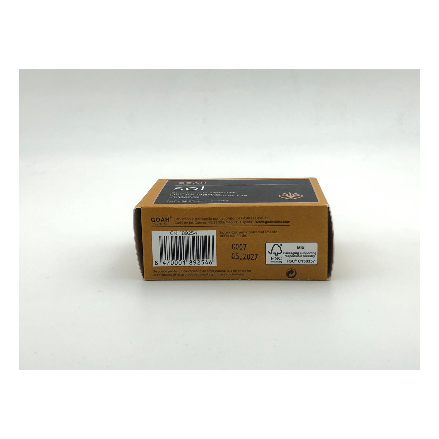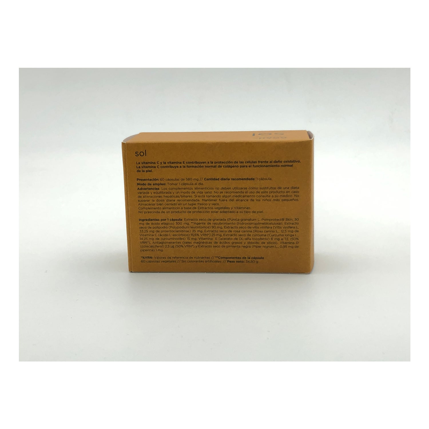 Goah Clinic Sol 60caps nutritional supplement based on turmeric, Granada, Polypodium Leucotomos, grape and vitamins that have great anti-oxidant properties beneficial for our skin. Acts as a sunscreen and reduces the appearance of new spots on the skin caused by UV rays. Ideal for periods of exposure to the sol. Combat with the decrease of the density of the bone, providing more strength and resistance to the bones.