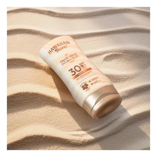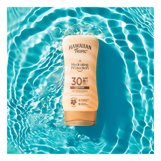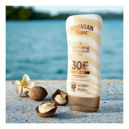 Hawaiian Tropic Silk Hydration Sun Lotion Spf30 High 180ml is a protective body lotion SPF 30 containing moisturizing properties and natural silk proteins that keep skin hydrated for 12 hours. Its light texture facilitates application. Protects the skin against the sun's UVA and UVB rays. It is also water-resistant. It is enriched with vitamins C and E, and also contains a very tropical fragrance.