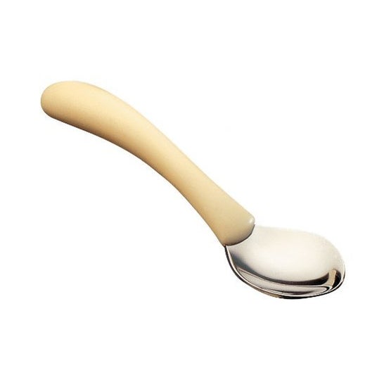This spoon stands out for its curved design and a thick handle, which provides a secure and comfortable grip, even with limited hand strength. Made from durable and resilient materials, it adapts to different wrist positions, minimizing the effort needed to bring food to the mouth.