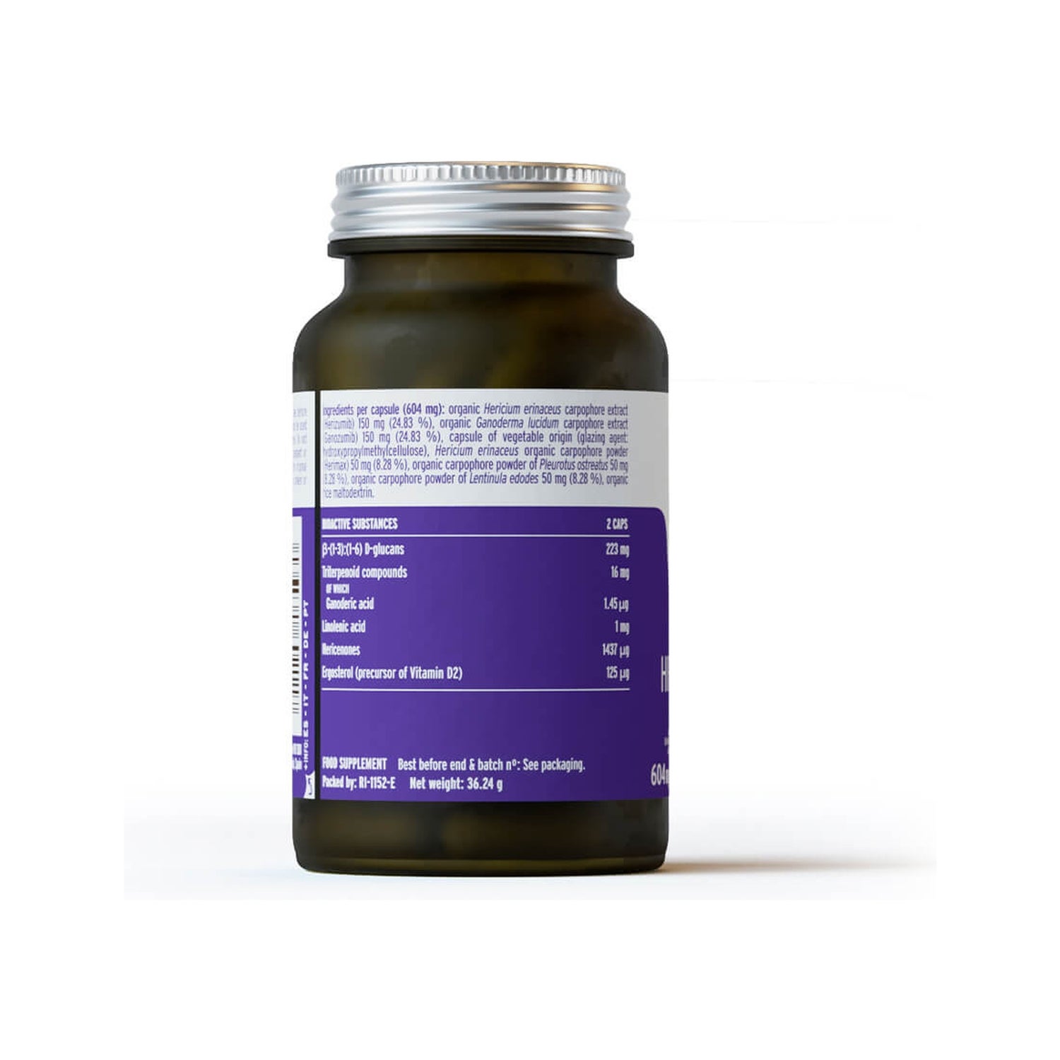 Food supplement based on extracts of reishi, dandelion, shiitake and pleurotus mushrooms. It favors the balance of the intestinal microbiota and supports the normal functioning of the immune system. In addition, its ingredients contribute to the care of the skin and mucous membranes. Suitable for adults.