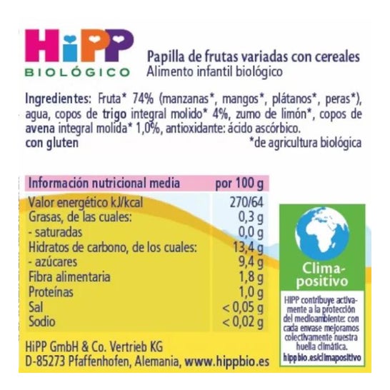 Organic small organic jar of soft fruits combined with fine cereals and are ideal to satiate and help baby's digestion. The mixture of fruit with cereals provides your baby with an important part of protein, vitamin C, which helps to strengthen the defenses.