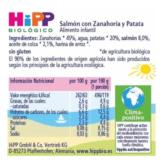 Hipp Tarrito de Salmon con Zanahoria y Patata Bio +6M 190g