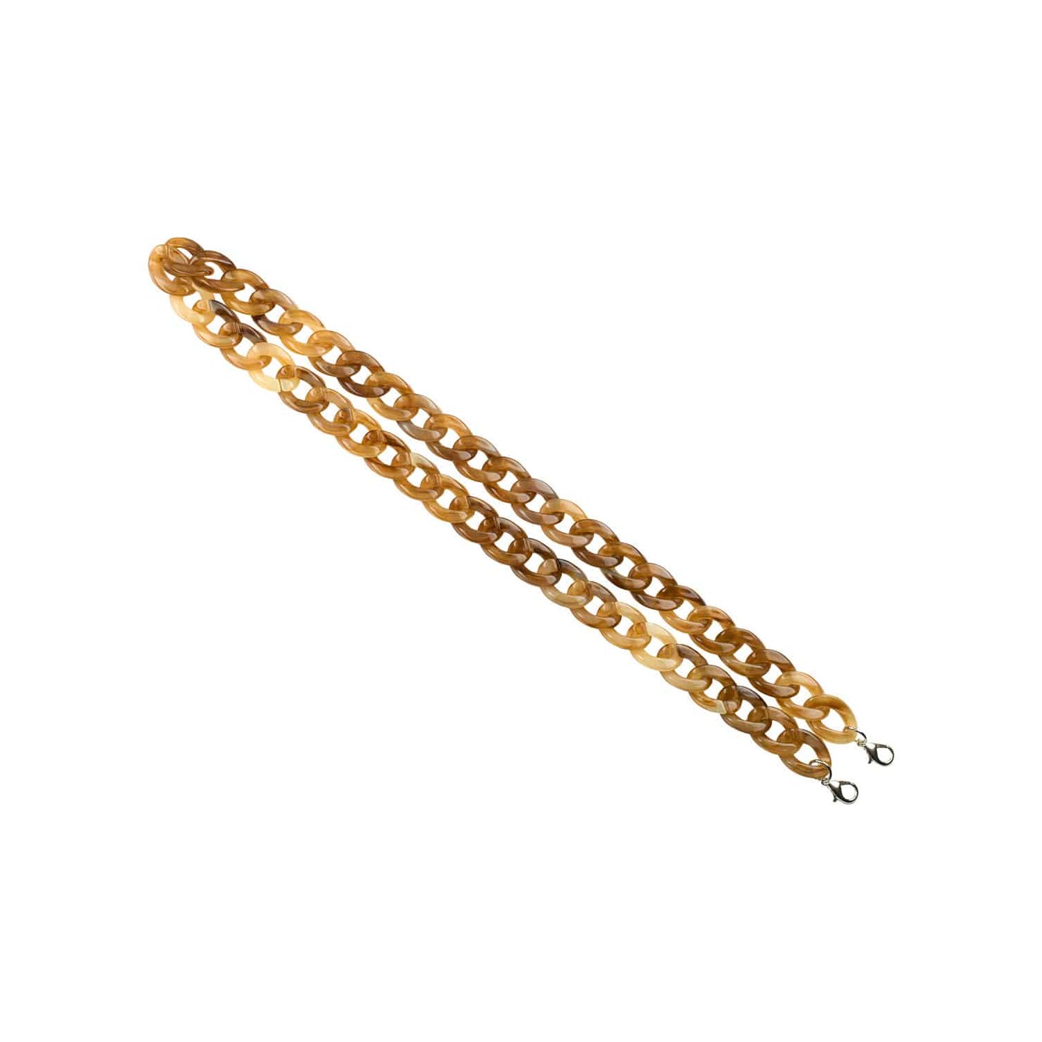 Modern eyewear chains to go perfect with any look. The fashionable accessory for sunglasses or presbyopia. This chain model has thick links with the advantage of being very comfortable and above all lightweight. The most practical solution to keep your glasses safe while you are not wearing them. They have small carabiners at the ends. Simply remove the clips and attach them to the cords of the glasses. A beautiful, practical and original accessory to keep your sunglasses or eyeglasses safe.