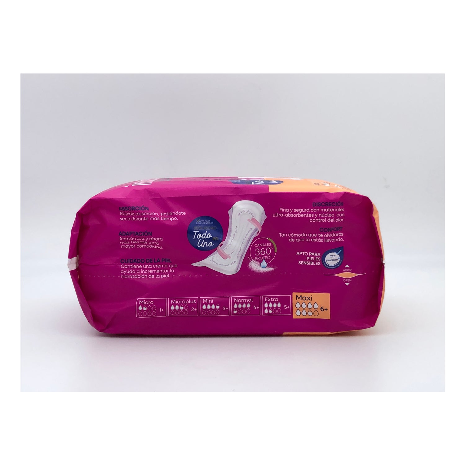 Anatomical and discreet, these pads incorporate Dermoprotect technology, which helps reduce irritation and provides greater skin protection thanks to extracts of blackcurrant, aloe vera and ambiaty