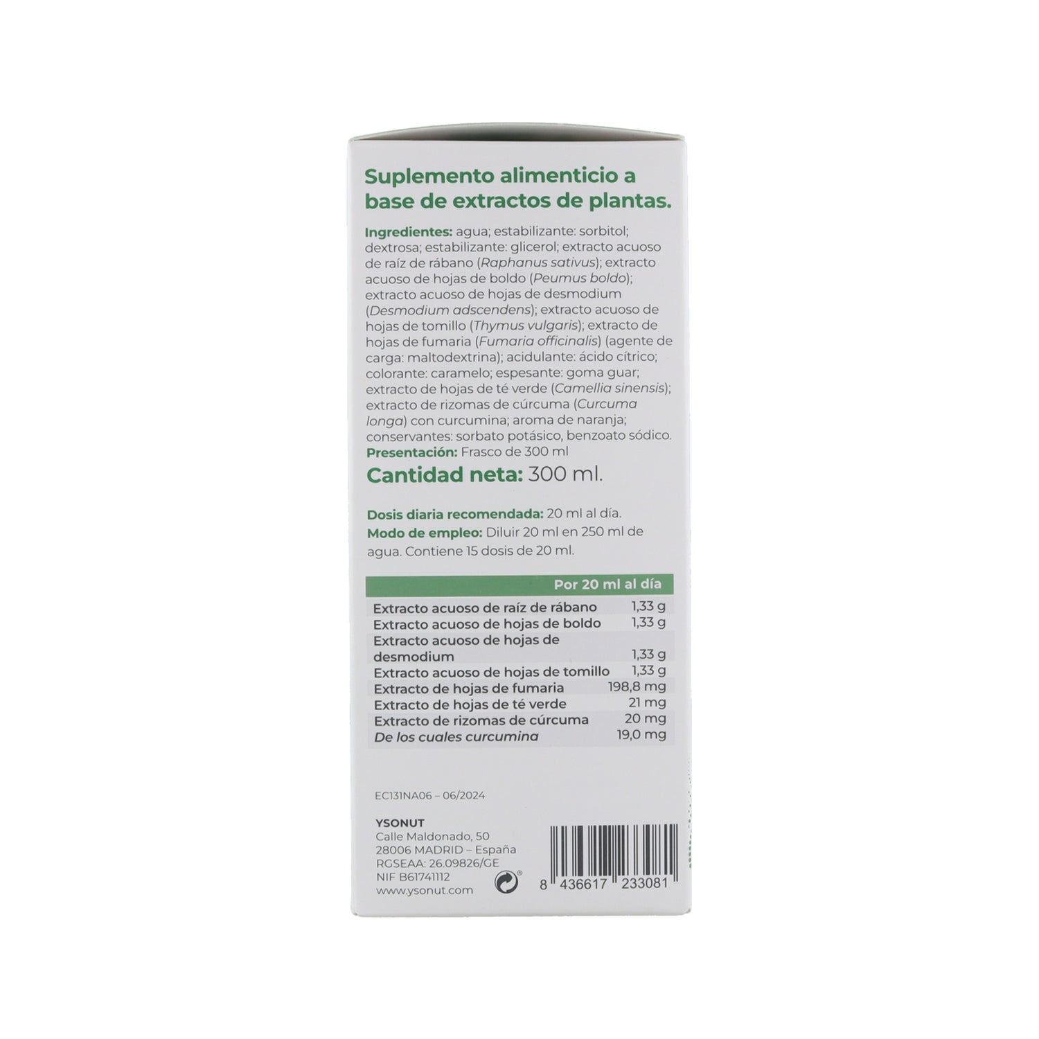 Desmodium promotes hepatic drainage. Turmeric is known for its beneficial effects on digestion. It promotes the proper functioning of the liver and facilitates the elimination of fats from the liver. Fumitory is traditionally used to support the body's elimination functions. Sorbitol is a polyol that contributes to digestive well-being (dyspeptic disorders).