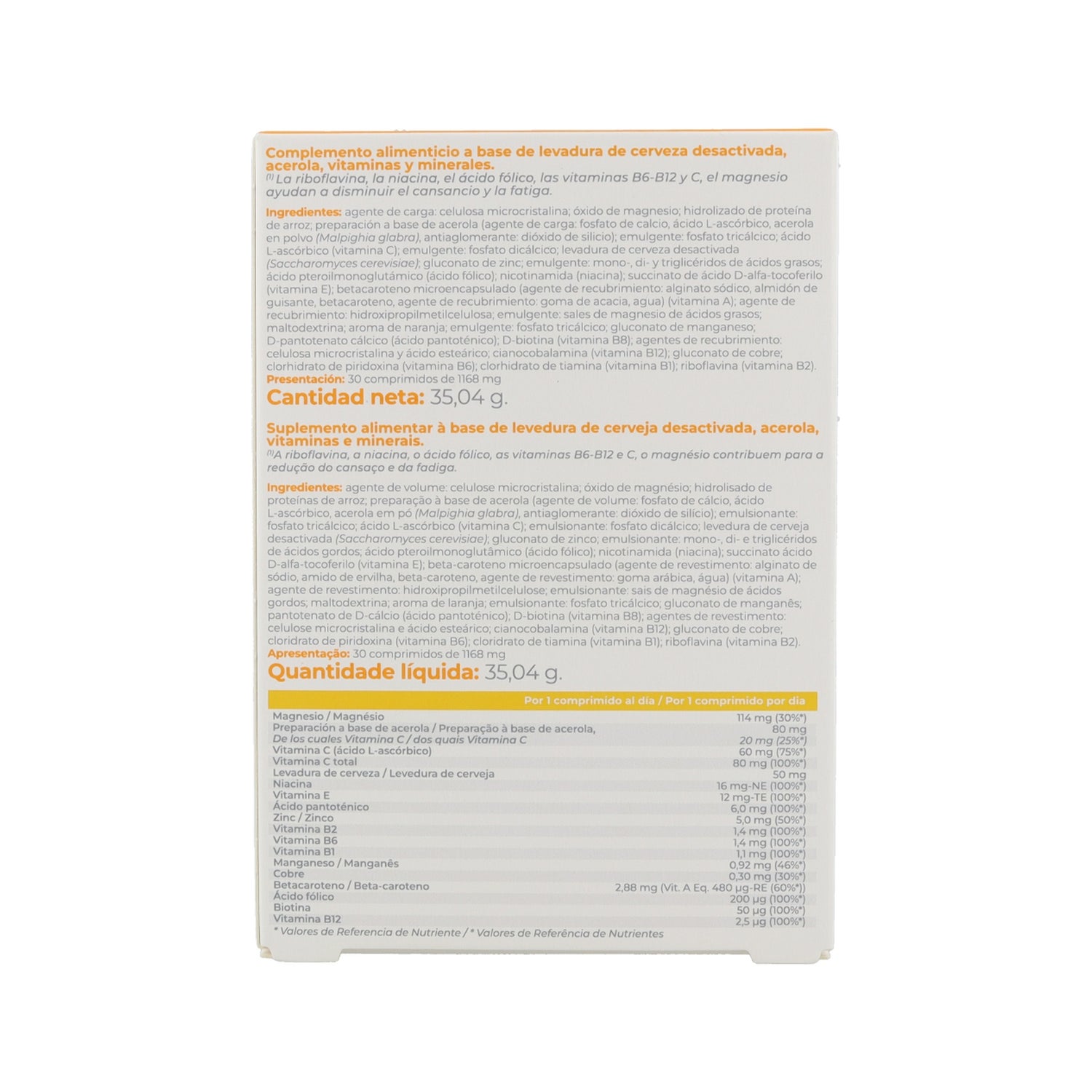 Dietary supplement in tablet form, made from 11 vitamins and 4 minerals, which contribute to normal energy metabolism and reduce the feeling of tiredness or fatigue. It provides 100% of the recommended daily amounts of vitamins B and C.