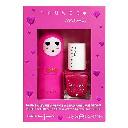 Inuwet Mini Lip Balm & Water-Based Nail Polish Cherry Strawberry is a set designed especially for the little ones. This coffret includes a nourishing lip balm and a water-based nail polish, both with a cherry and strawberry fragrance.