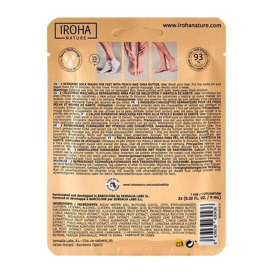 Mask in the form of a sock that helps repair and nourish the skin of the feet. Formulated with peach extract and shea butter, which help to eliminate calluses or corns. It also helps protect against cracks and promotes skin softness. Suitable for all skin types. Dermatologically tested. Presented in a package with two units.