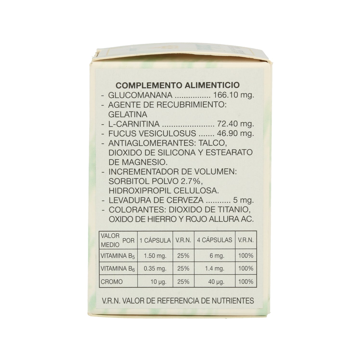 Dietary supplement designed and formulated to burn fat and increase glycogen synthesis. The composition contains Konjac (glucomannan), Brown Algae. L-Carnitine, L-Cysteine, DL Phenylalanine, Potassium (citrate), Vitamin B5, Vitamin B6. Allergen warning: Contains gluten, wheat and may contain traces of nuts, egg, milk and soy.