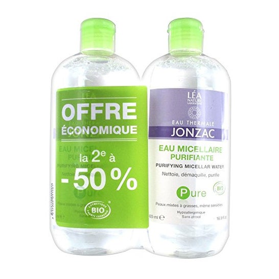Jonzac Purifying Micellar Water 2X500ml is ideal for those looking for an effective and gentle daily facial cleansing. Designed for combination and oily skin, its high-tolerance formula cleanses, removes makeup, and purifies without drying out.