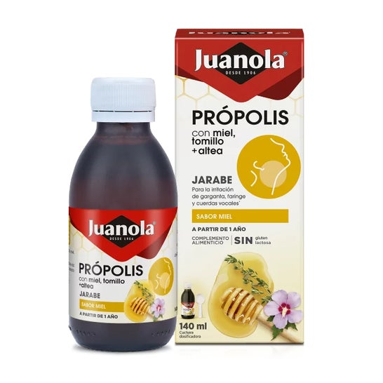 Propolis syrup with honey and thyme from Juanola® is a perfect ally to relieve sore throat. The presence of propolis in its formulation, a substance used by bees with high nutritional content, gives you a powerful anti-inflammatory and antimicrobial action thanks to its flavonoids and phenolic acids. In addition, thyme, altea and honey increase the benefits of propolis thanks to their nutrients and positive properties for the respiratory tract.