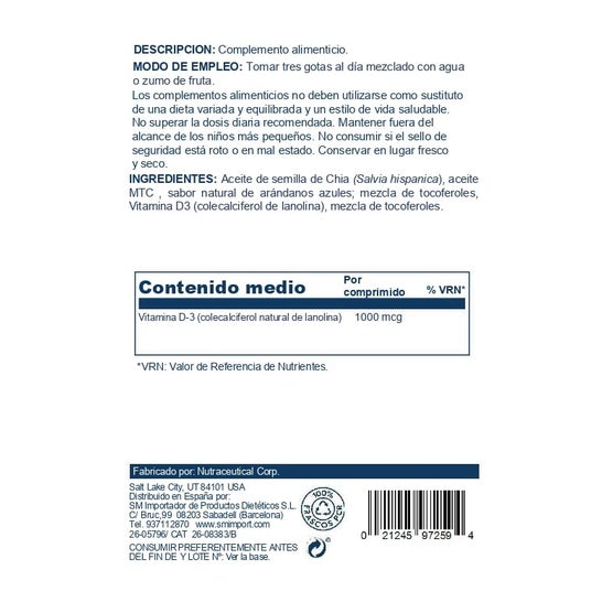 It is a Dietary supplement with a formula supplemented with organic chia seed oil and with the flavour and benefits of blueberries that serves as a nutritional support for bones.