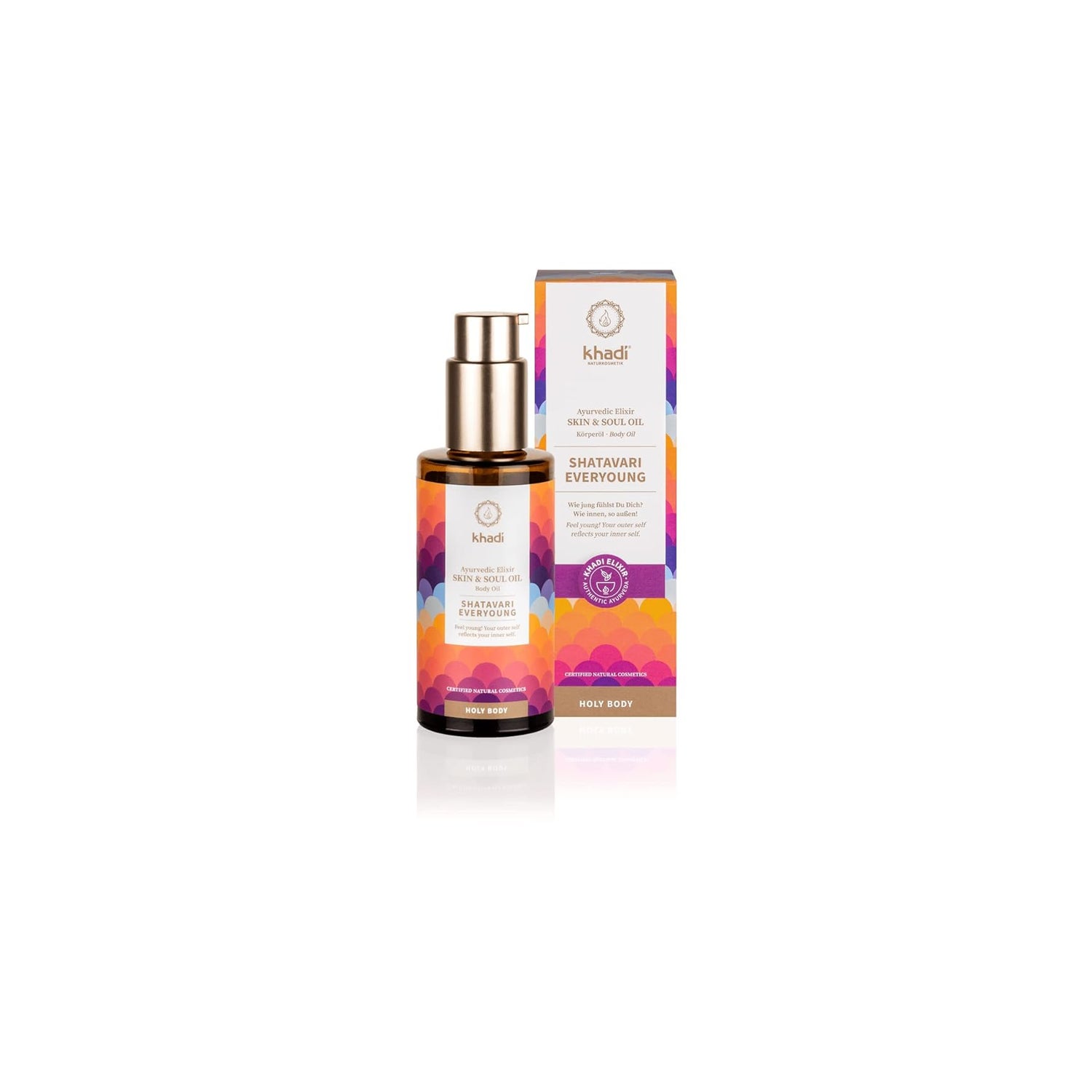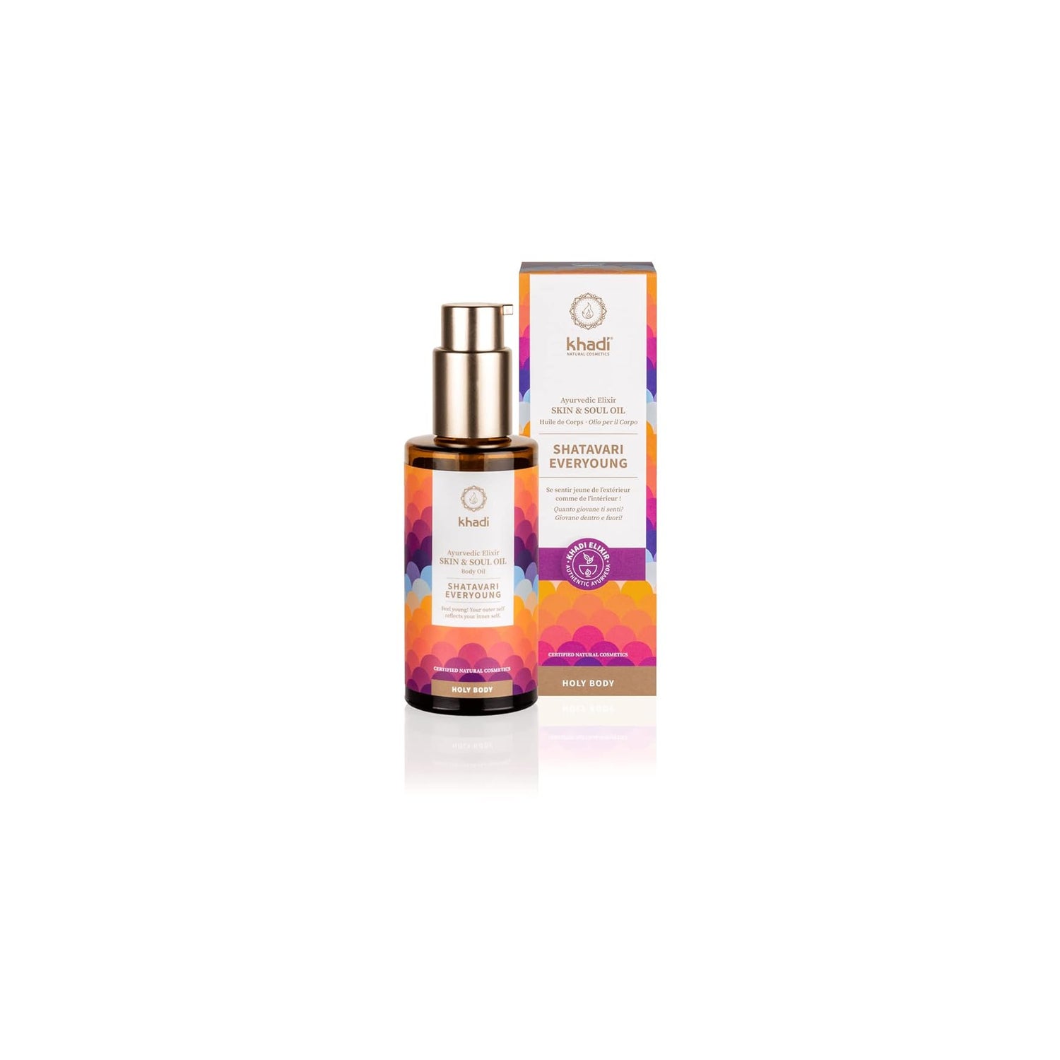 Elixir oil with ayurvedic recipe and anti-aging action for body and facial skin. Promotes deep hydration and supports skin cell regeneration. Helps to tone, gives elasticity and radiance to the skin. Contains sandalwood essential oil, suitable for treating scars, stretch marks, dermatitis, eczema and irritated areas of the skin. With shatavari, ashwagandha and brahmi, which collaborate to provide a natural anti-aging care, against dry skin, wrinkles and pigmentation disorders. Suitable for all skin types.