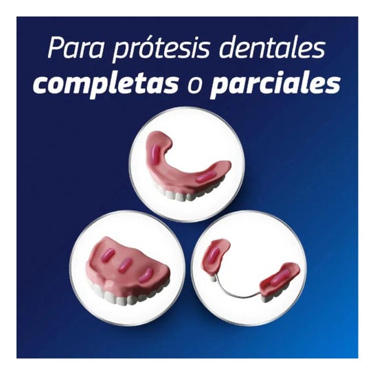 Apply a small amount to the clean, dry dental prosthesis. Hold firmly for a few minutes to seal it in the correct position.