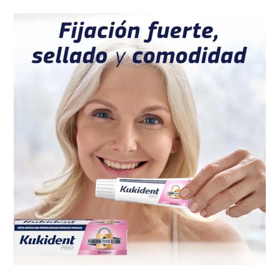 Kukident Pro All-Day Fixative Flavorless 47g is a dental adhesive cream with a neutral flavor that offers extra strong hold for dental prosthetics. With just a small amount of product, it helps keep the denture in the correct position.