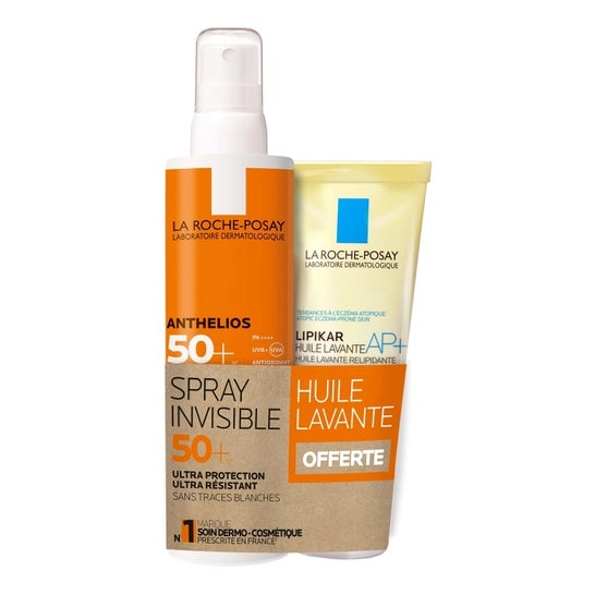 La Roche Posay Anthelios Invisible Spray SPF50 200ml + Lipikar Huile Lavante AP+ 100ml is a facial care set.