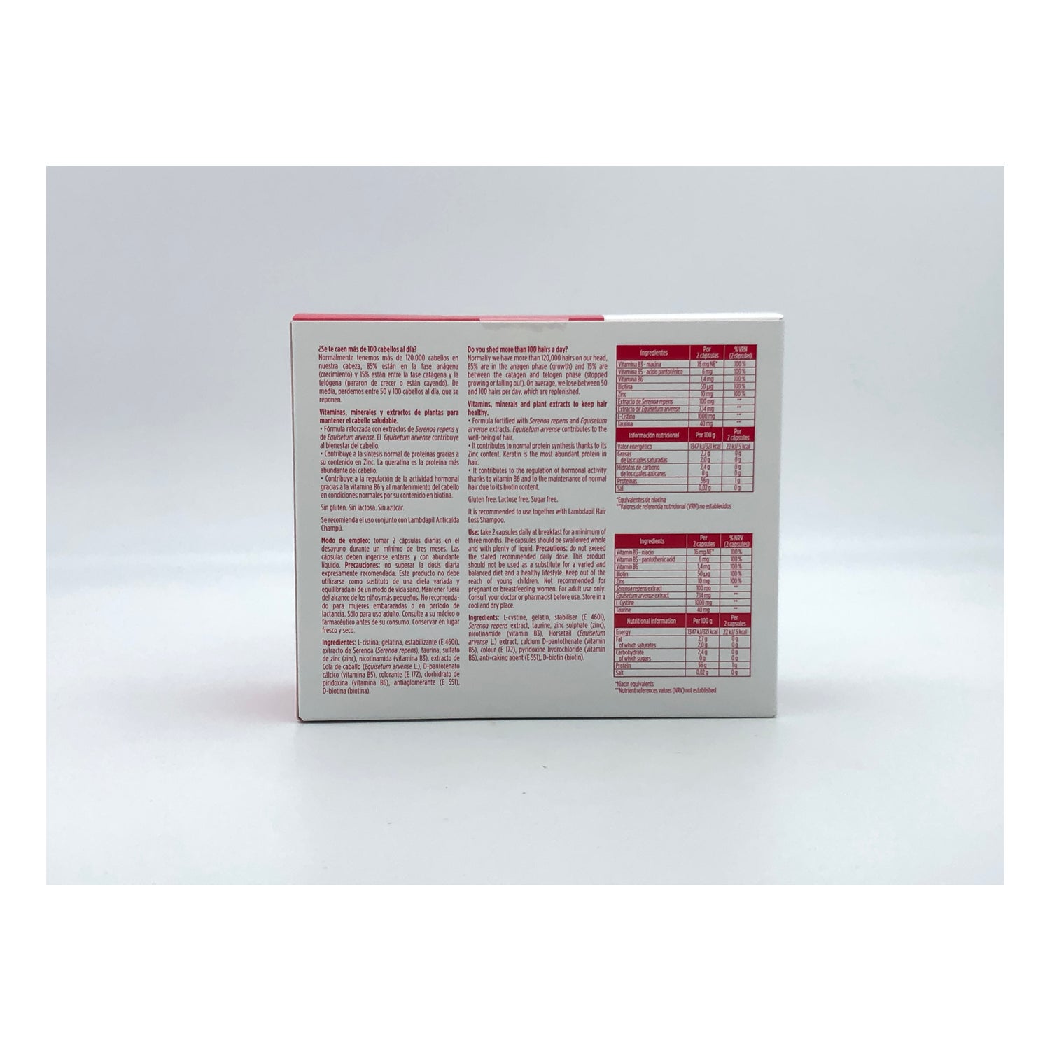 Lambdapil hair loss is a nutritional supplement based on vitamin C, vitamin B6, ProDensity Complex, Silicon, iron, and zinc to help recover the volume of your hair.