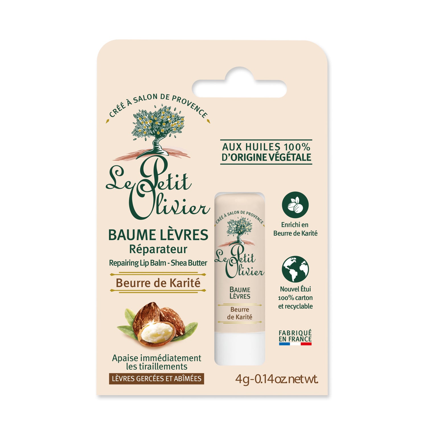 Le Petit Olivier Lip Balm Shea Butter 4g is a product designed to provide intense hydration to the lips. This repairing balm is formulated with plant-based oils and shea butter, allowing for effective repair and nourishment of the lips.