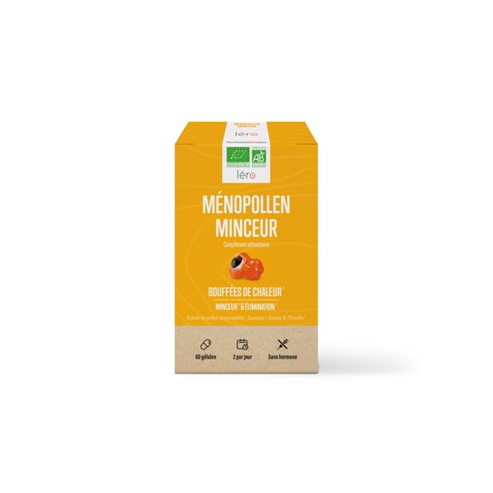 Léro Ménopollen Minceur 60 Caps is a dietary supplement that helps combat symptoms associated with menopause such as hot flashes or water retention. It is enriched with guarana, pollen, and elderberry; natural ingredients that help improve metabolic activity and reduce hot flashes, contributing to draining the body. It contains 60 pearls.