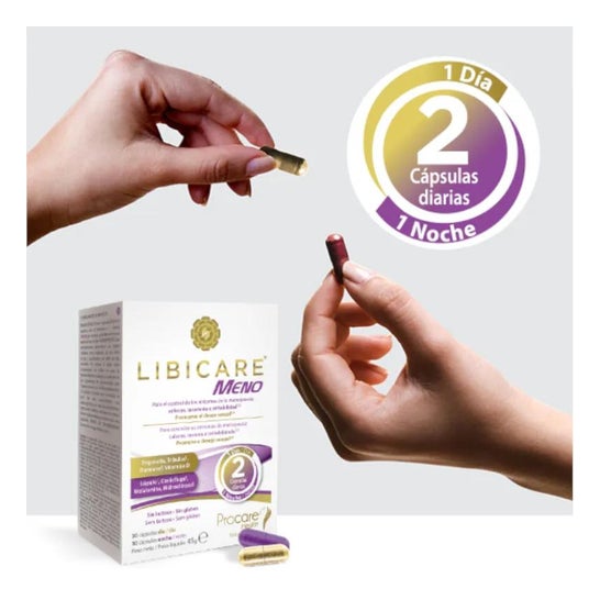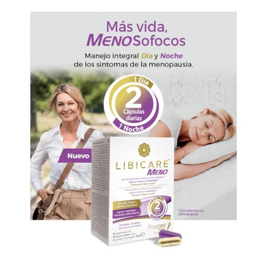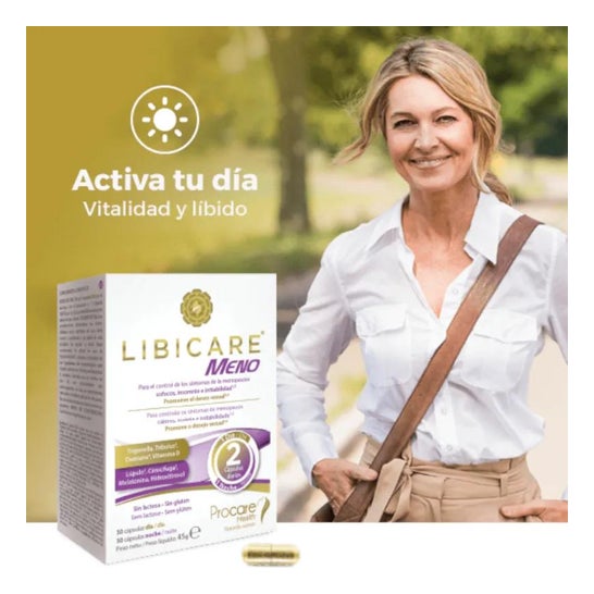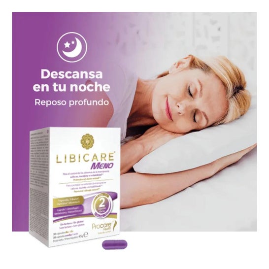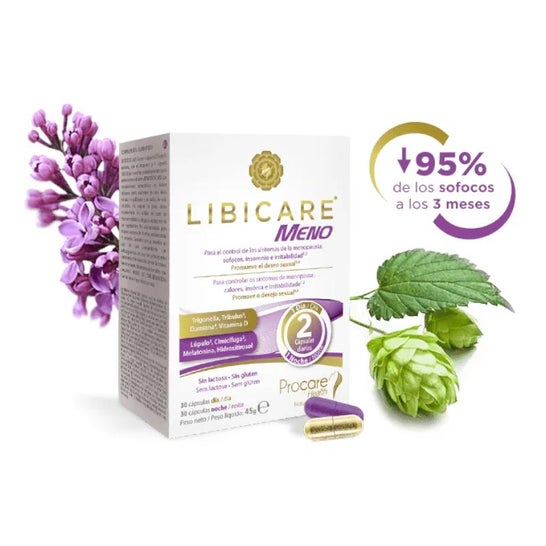Libicare Meno 30+30caps is a food supplement indicated for menopause. Its formula contains natural ingredients that help to cope with the symptoms of this stage of life.