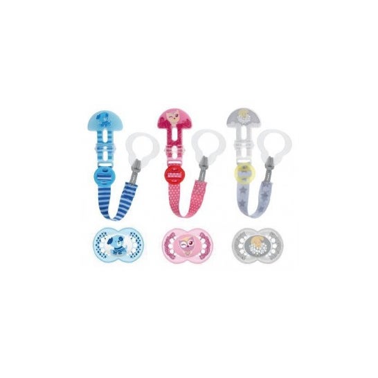 Mam Pacifier & Attachment Kit for Pacifiers & Attachments from 6 months Silicone Colour Alphabet. *The colour or design may vary depending on the stock available from the pharmacy serving the order.