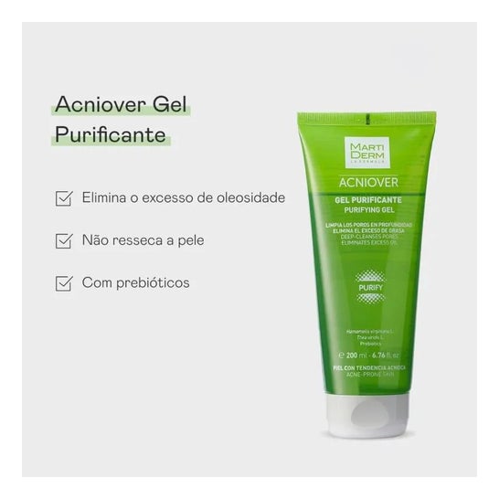 MARTIDERM® Acniover purifying gel 200ml is a product indicated for deep pore cleansing that also eliminates excess oil and eliminates impurities, shine and blackheads. It is the ideal product for people with acne-prone skin or with mild or moderate acne.