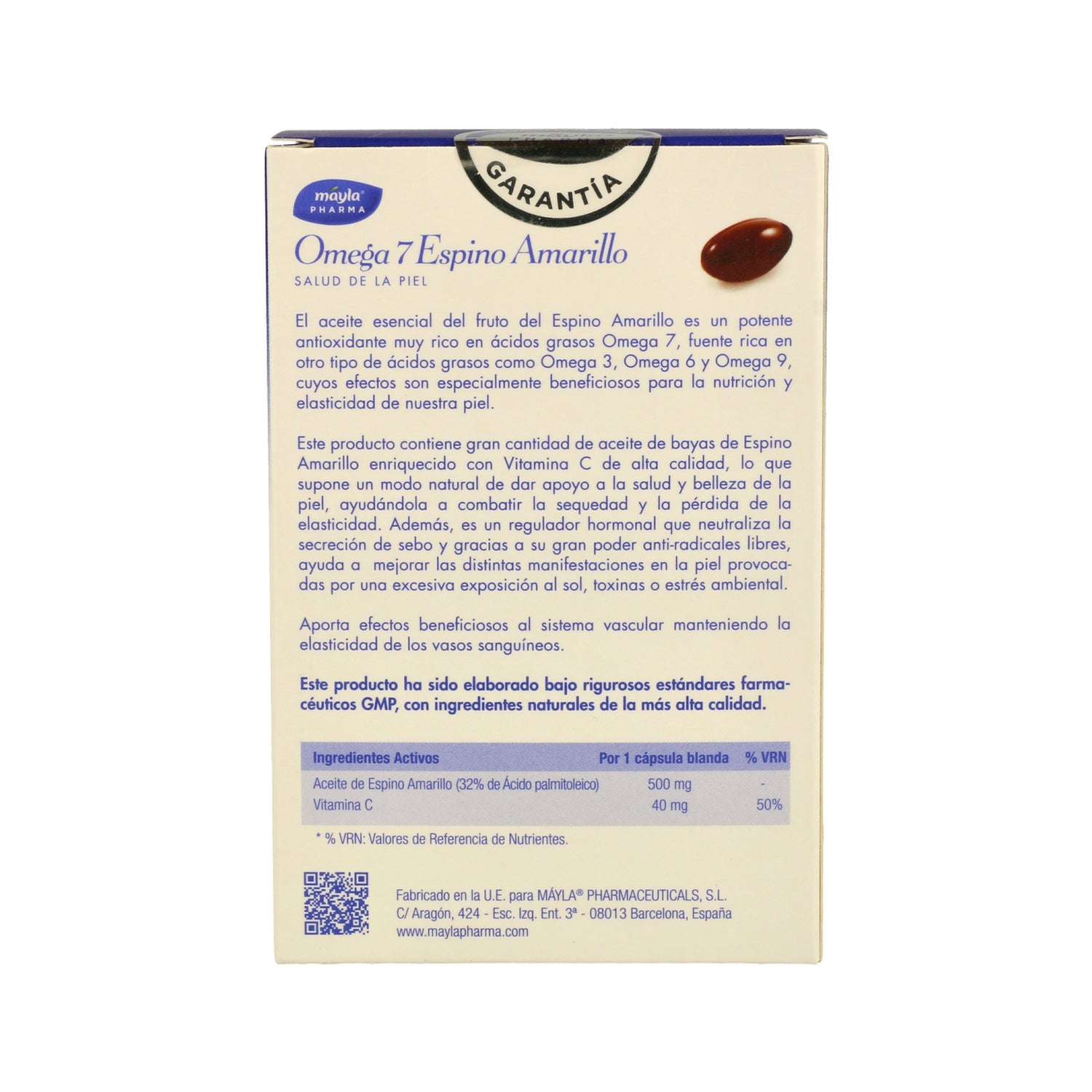 Mayla Omega-7 sea buckthorn is a food supplement that helps combat dryness and loss of skin elasticity, providing nutrition and shine. It also helps retain moisture from the skin and helps repair sun damage.