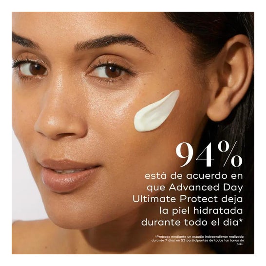 As the last step of your morning skincare routine, apply 5 pumps (¼ teaspoon) of Advanced Day Ultimate Protect with upward movements on your face, being careful to avoid the eye area.
