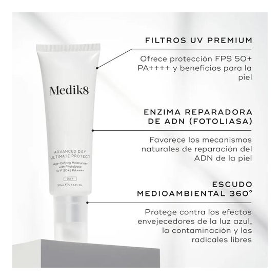 Medik8 Advanced Day Ultimate Protect SPF50 50ml is a sunscreen that offers a high level of sun protection that helps prevent premature signs of skin aging.