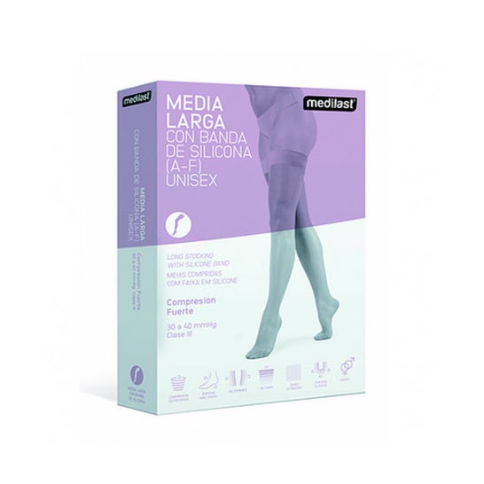 Medilast Media 602 with Black Toe Eg 1 Pair is an effective solution to relieve and prevent swelling and discomfort associated with mild circulatory problems in the legs. This normal compression stocking is designed to provide rest and well-being, making it ideal for those who stand or sit for long periods. Additionally, it is suitable for preventing varicose veins and improving daily circulation. With a graduated compression of 22 to 29 mmHg, this product exerts controlled pressure that promotes venous return and alleviates the feeling of heaviness in the legs. Its extra fine and soft fabric fits comfortably, offering discretion under any garment. Among its benefits, it stands out for its ability to prevent swelling, prevent varicose veins, and provide immediate relief from fatigue, keeping your legs light and rested throughout the day.