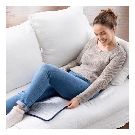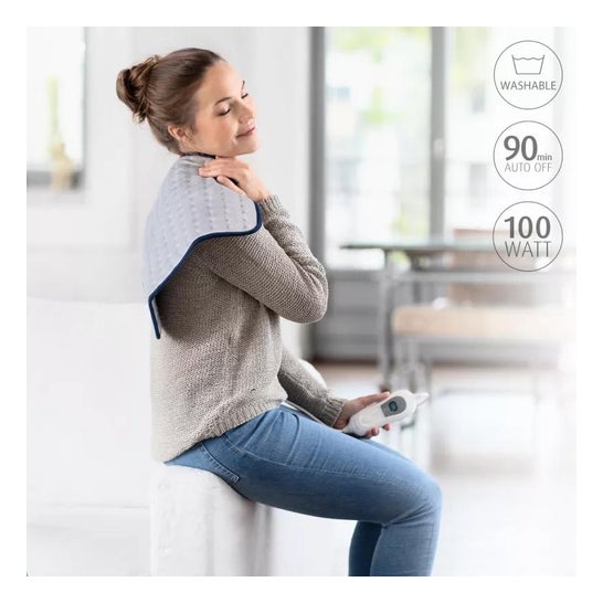 Rectangular design heating pad made of polyester with adjustable thermostat with 3 temperatures. Promotes muscle relief in localized areas of the body. Includes a detachable cable and a remote control. In addition, it has an automatic shut-off system.