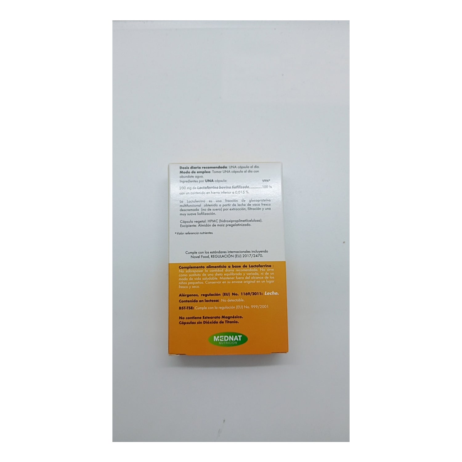 Dietary supplement in capsule form, made from lactoferrin, a natural protein obtained from fresh skimmed cow's milk. Especially indicated to contribute to the proper functioning of the immune system, or to strengthen it in processes of infection by viruses, fungi or bacteria, as it helps to inhibit the adhesion of these in the cells.