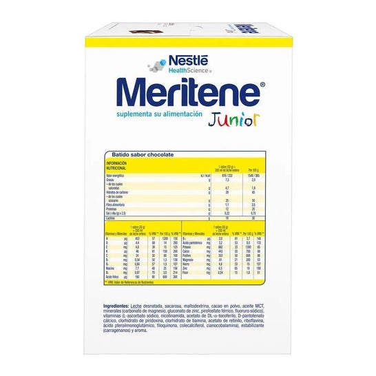 Nestlé Meritene Junior Chocolate Flavored Milkshake 15 sachets is a food supplement that helps to supplement the diet of the little ones, without replacing any main meal.