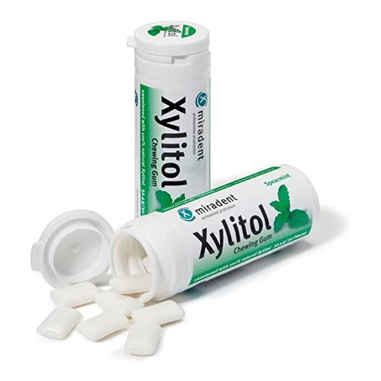 Peppermint flavoured chewing gum sweetened with xylitol. Calcium-rich formula, free of aspartame and sorbitol. Helps to freshen breath quickly and easily. Its ingredients generate a cold effect in the mouth and stimulate saliva production. Suitable for adults.