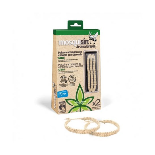 Insecticide bracelet made from citronella and hemp oils, suitable for adults and children from 3 years. It helps to gradually release active molecules that repel insects, helping to prevent bites for 30 days. Also, it can be worn on the ankle, as it fits snugly, is water resistant and does not cause irritation. Clinically tested. Available in 2 units in beige colour, with braided design.