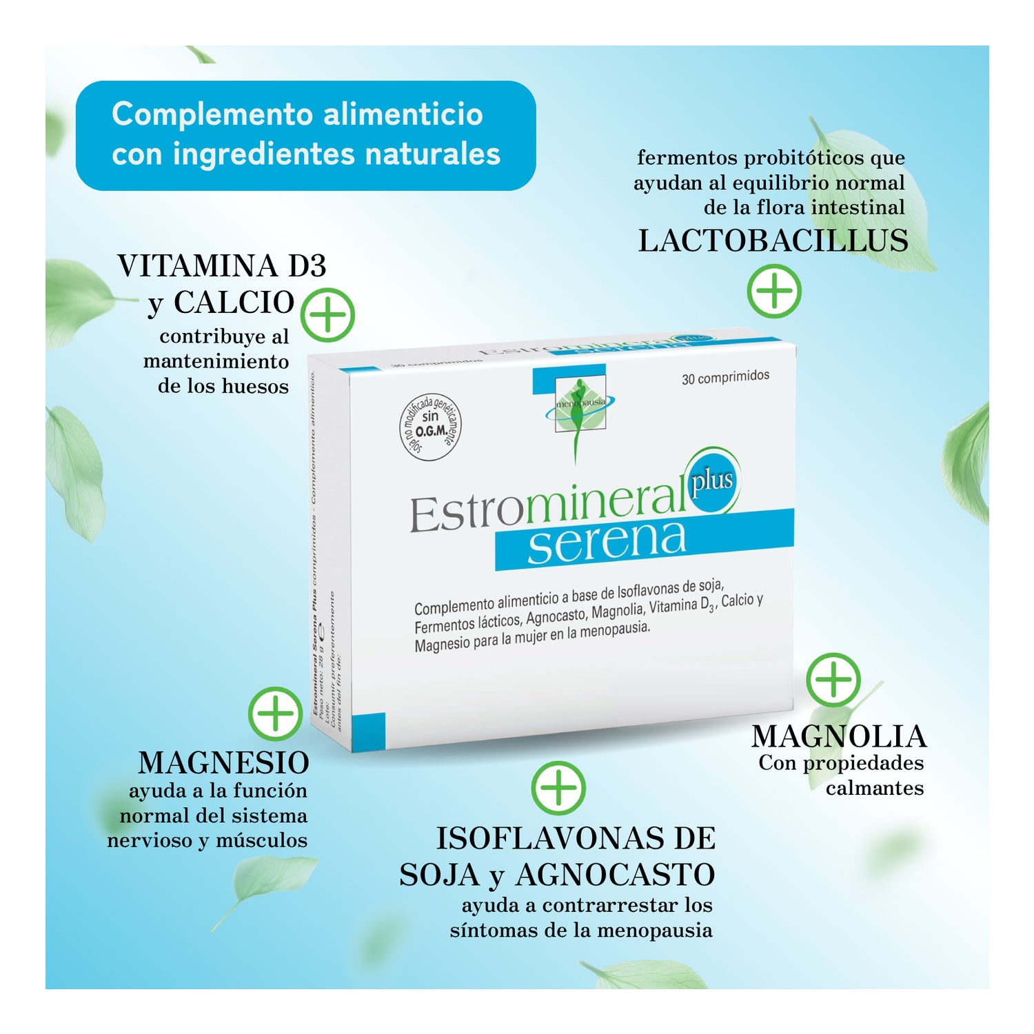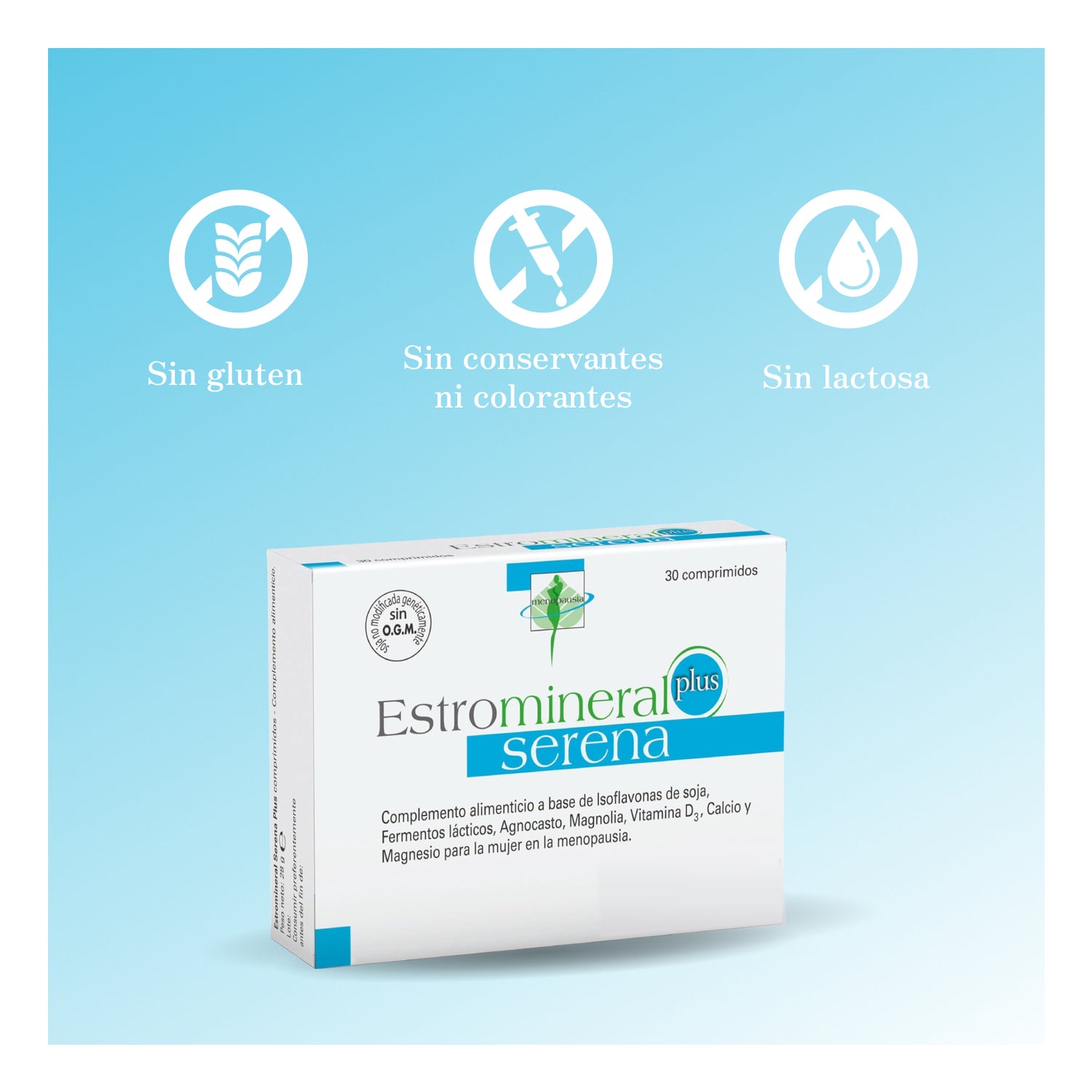 Mylan Estromineral Plus Serena is a food supplement based on soy isoflavones, these natural estrogens of plant origin are very beneficial to combat the symptoms of menopause. It is also composed of other components which help reduce discomfort and combat physical condition and mood. Menopause can cause great transformations in a woman's body that may not allow her to lead a normal life, thanks to this food supplement and a balanced diet, you will enjoy a normal and healthy life.