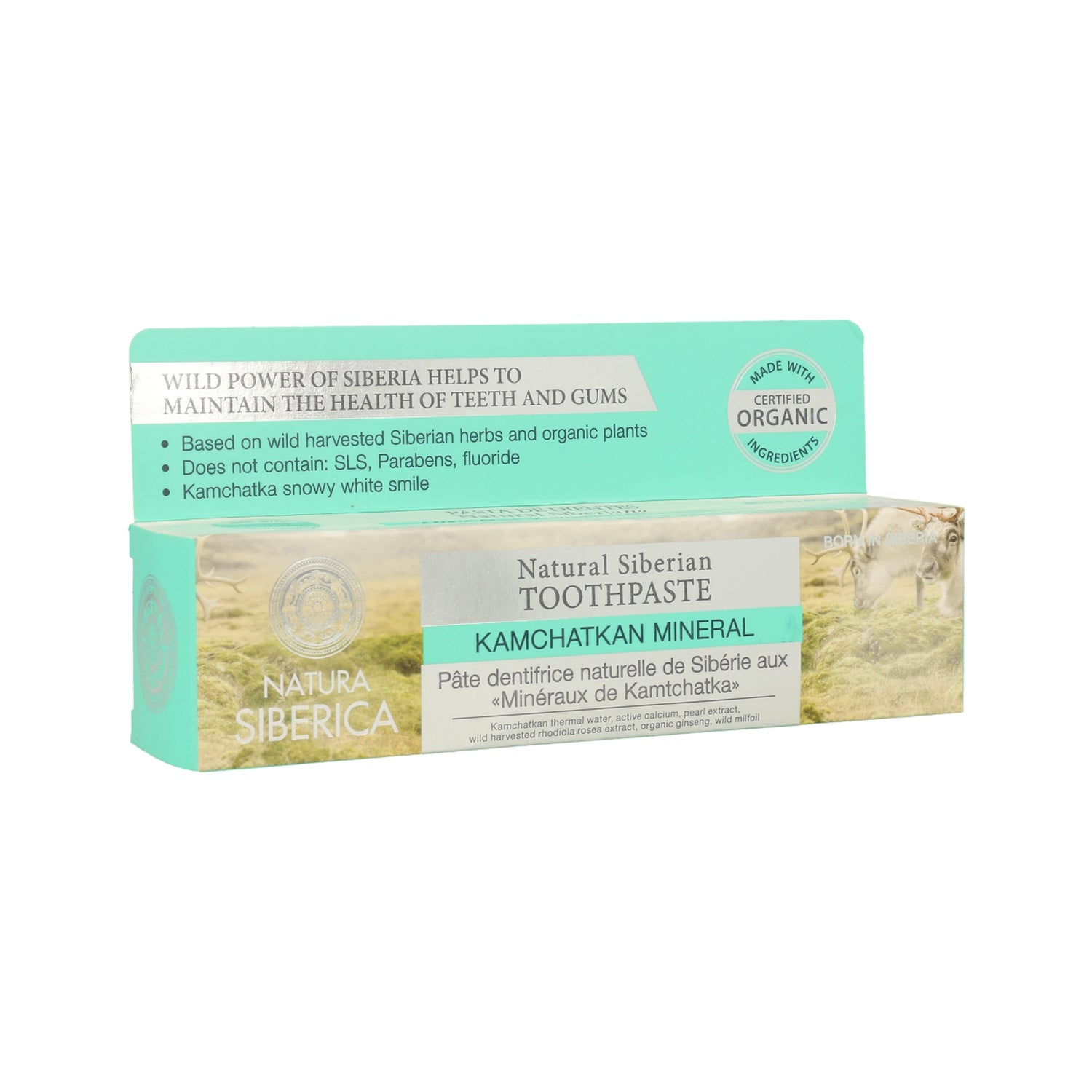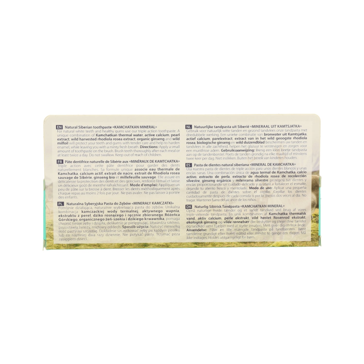 Toothpaste formulated with Kamchatka thermal water and extracts of pearl, rhodiola and yarrow. Helps to deeply clean teeth by freshening breath. The white clay present helps to prevent the formation of dental plaque. Suitable for adults.