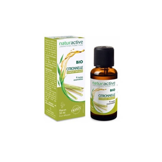 The Naturactive lemongrass complex is a blend of 4 organic essential oils for atmospheric diffusion: lemongrass, lemon balm, sweet orange and palmarosa. This organic complex allows you to enjoy a peaceful summer.