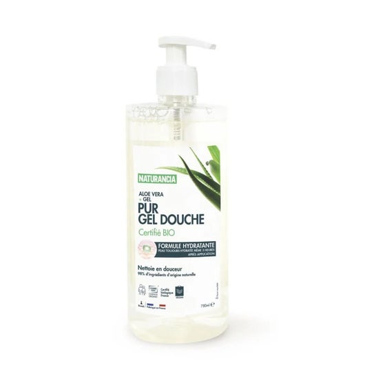 Naturancia Pur Gel Shower Bio 750 ml is a product designed for gentle cleansing and hydration of the skin. Its formulation consists of 98% natural origin ingredients, making it a skin-friendly option, especially suitable for normal to dry skin.