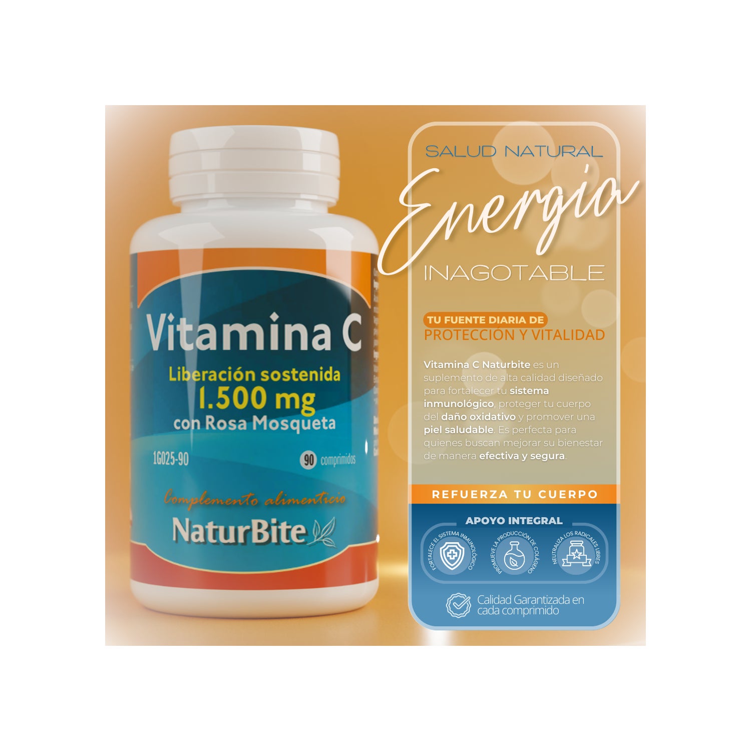 NaturBite Vitamin C 1500mg Sustained Release 90 tablets is a dietary supplement based on vitamin C and rosehip.