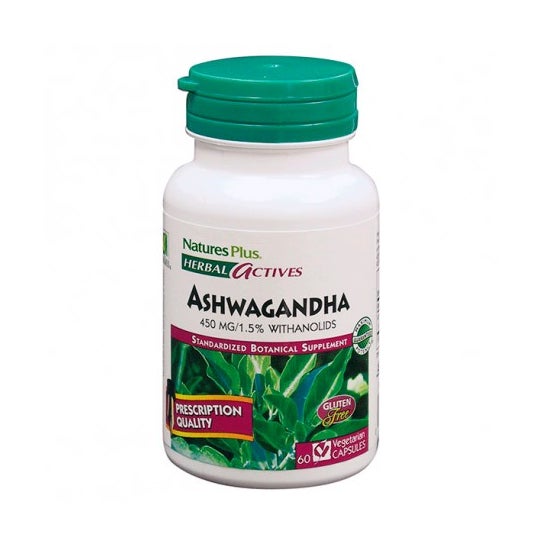 NaturesPlus Ashwagandha 450mg 60caps is a food supplement that provides adaptogenic properties that help reduce stress processes throughout the day .