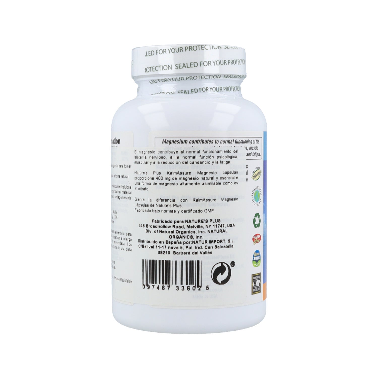 NaturesPlus Kalmassure Magnesium 400mg 120caps is a food supplement with magnesium citrate. This component helps muscle regeneration and relieves headaches.