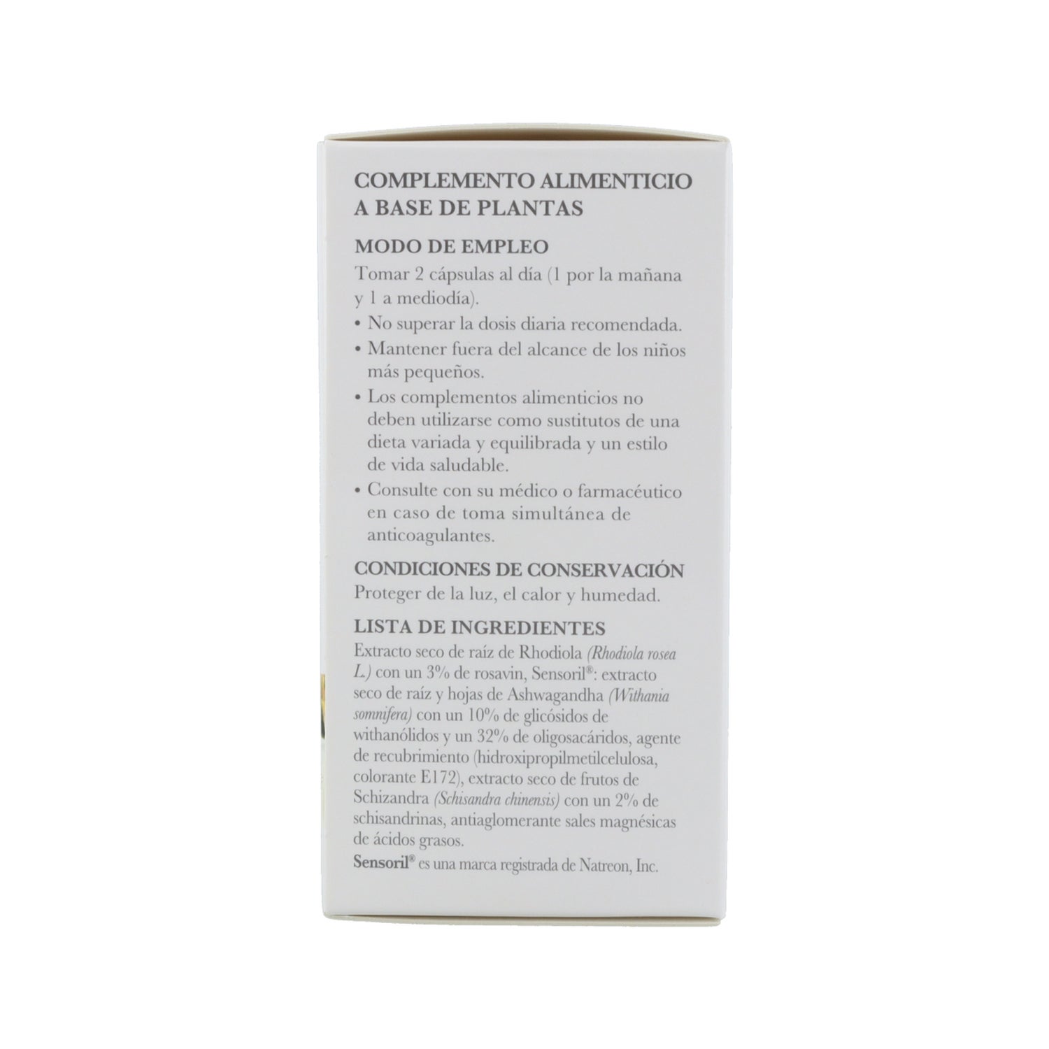 Formulated with a combination of extracts from three plants: rhodiola, ashwagandha, and schizandra.