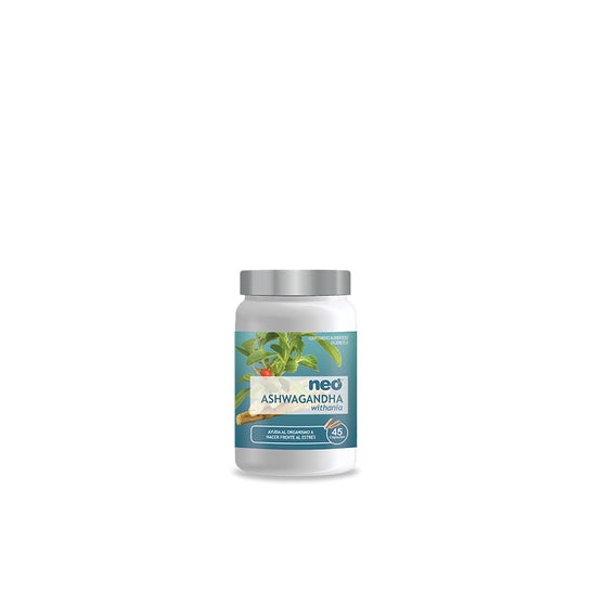 Neo Ashwagandha 45caps is a natural supplement formulated with ashwagandha, an adaptogenic plant that helps to reduce nervousness, promoting relaxation and emotional balance.